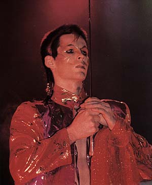 "There's no compromise. We go on stage to entertain and it's loud and brash with an element of pathos as well. There are very few extrovert English bands. I don't think dressing up in strange clothes makes you an extrovert- it has to do with charater. It's being honest, opening up and being able to laugh at yourself. It's a mixture of passion, sexuality, humor. Blood and guts." L.A. laughed, "Robert once broke my arem on stage. We use to do a sort of Apache dance routine where I got thrown about an awful lot. But after that I vowed I would never let him throw me around again."